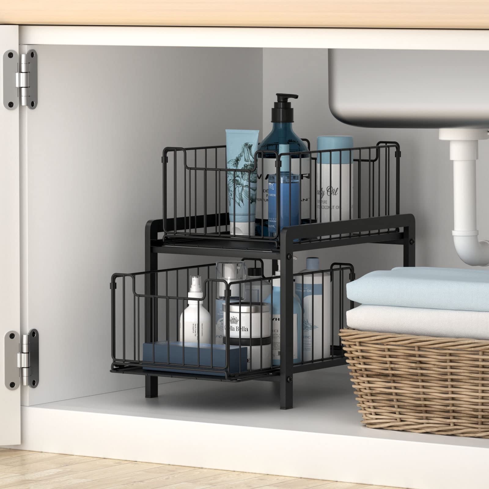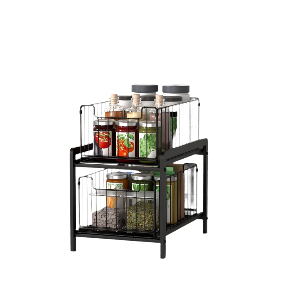 מדף אחסון 2 קומות עם מגירות נשלפות לא מחליד