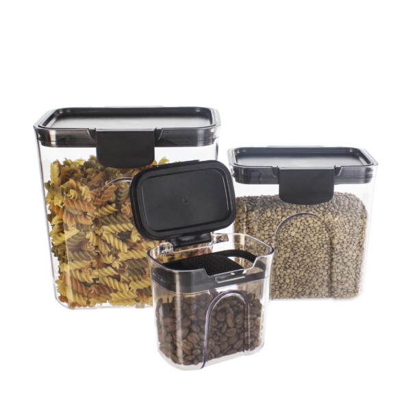 קופסאות אחסון שקופות עם מכסה נעילה, איכותיות ומגיעות בשלושה גדלים ושני צבעים- מוקה ושחור.